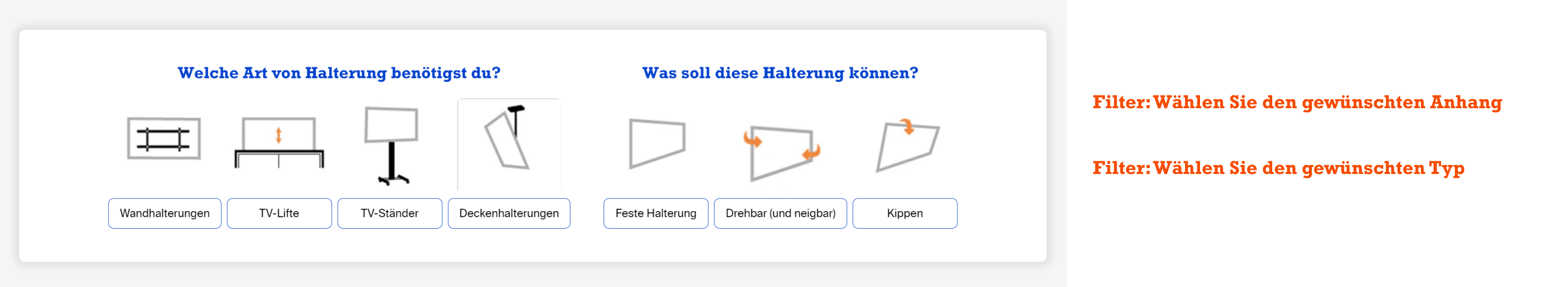 So ist es ganz einfach und schnell, die gewünschte TV-Wandhalterung zu finden.