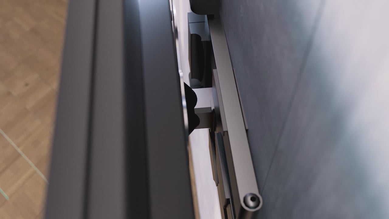 - Schlanker Wandabstand: variabel von ca. 55 mm bis max. 500 mm Auszug.