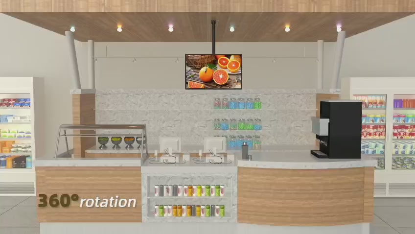 Die A-PEQ T765 Deckenhalterung ist Ihre Lösung, wenn Sie einen Fernseher sicher an der Decke montieren wollen – selbst an schrägen Decken. Geeignet für Displays von 39 bis 90 Zoll, trägt zuverlässig bis zu 85 kg. 360° drehbar, neigbar zwischen etwa 5° und 25° und höhenverstellbar zwischen 1,2 und 1,8 m – ideal für maximale Flexibilität in großen Räumen.